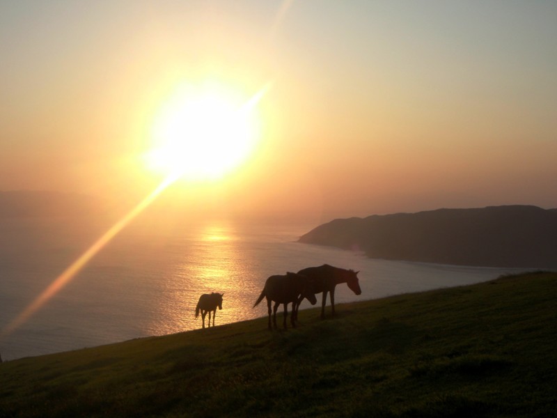 宮崎県都井岬で人為的な管理はほとんど加えられず、半野生状態に近い形で飼養されてる日本在来馬。毛色は、鹿毛、黒鹿毛が多い。