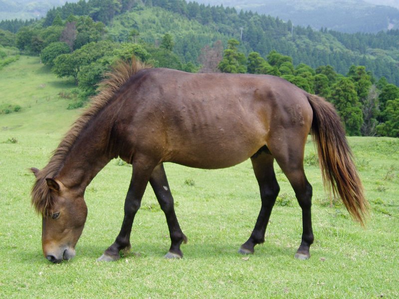 宮崎県都井岬で人為的な管理はほとんど加えられず、半野生状態に近い形で飼養されてる日本在来馬。毛色は、鹿毛、黒鹿毛が多い。