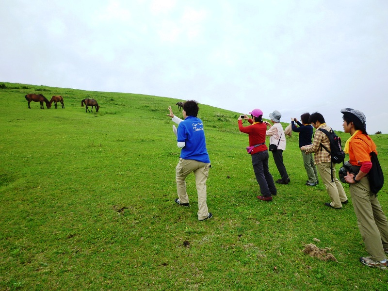 現在、都井岬では、全国的にも珍しい『野生馬』という特色を活かして、野生馬の社会を観察するガイドツアーが始まっています。