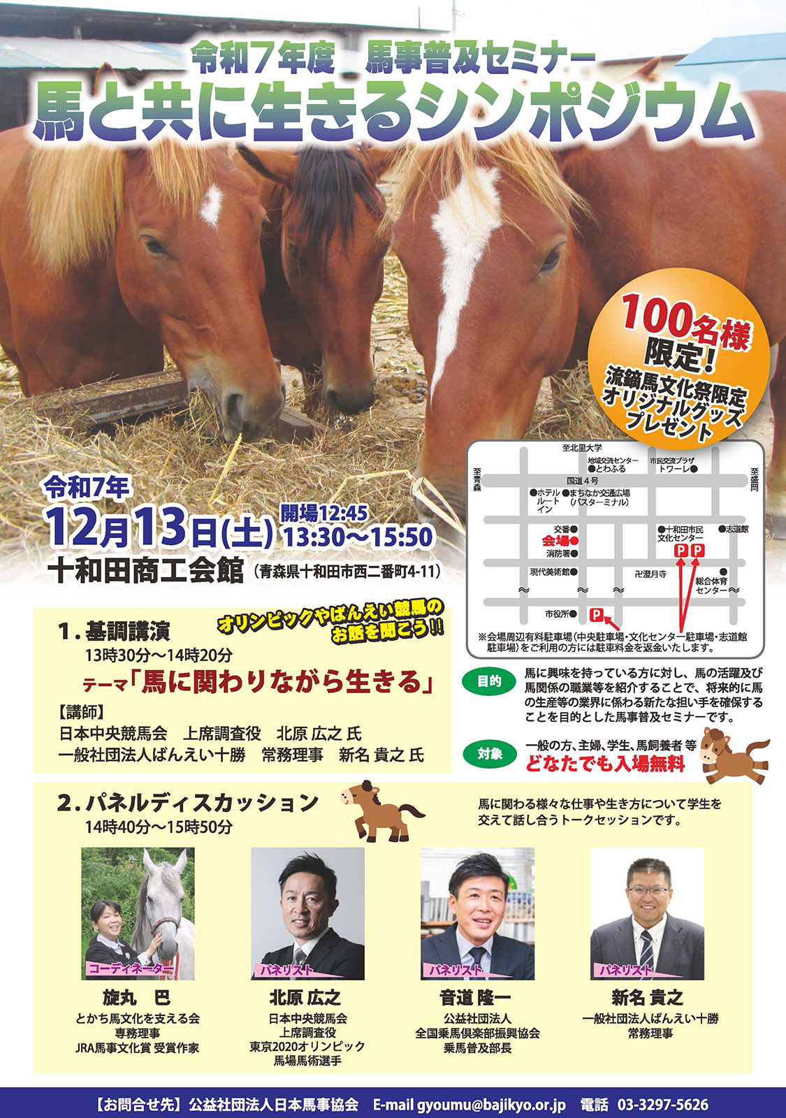 令和7年度馬事普及セミナー(馬と共に生きるシンポジウム)を下記のとおり開催いたします。