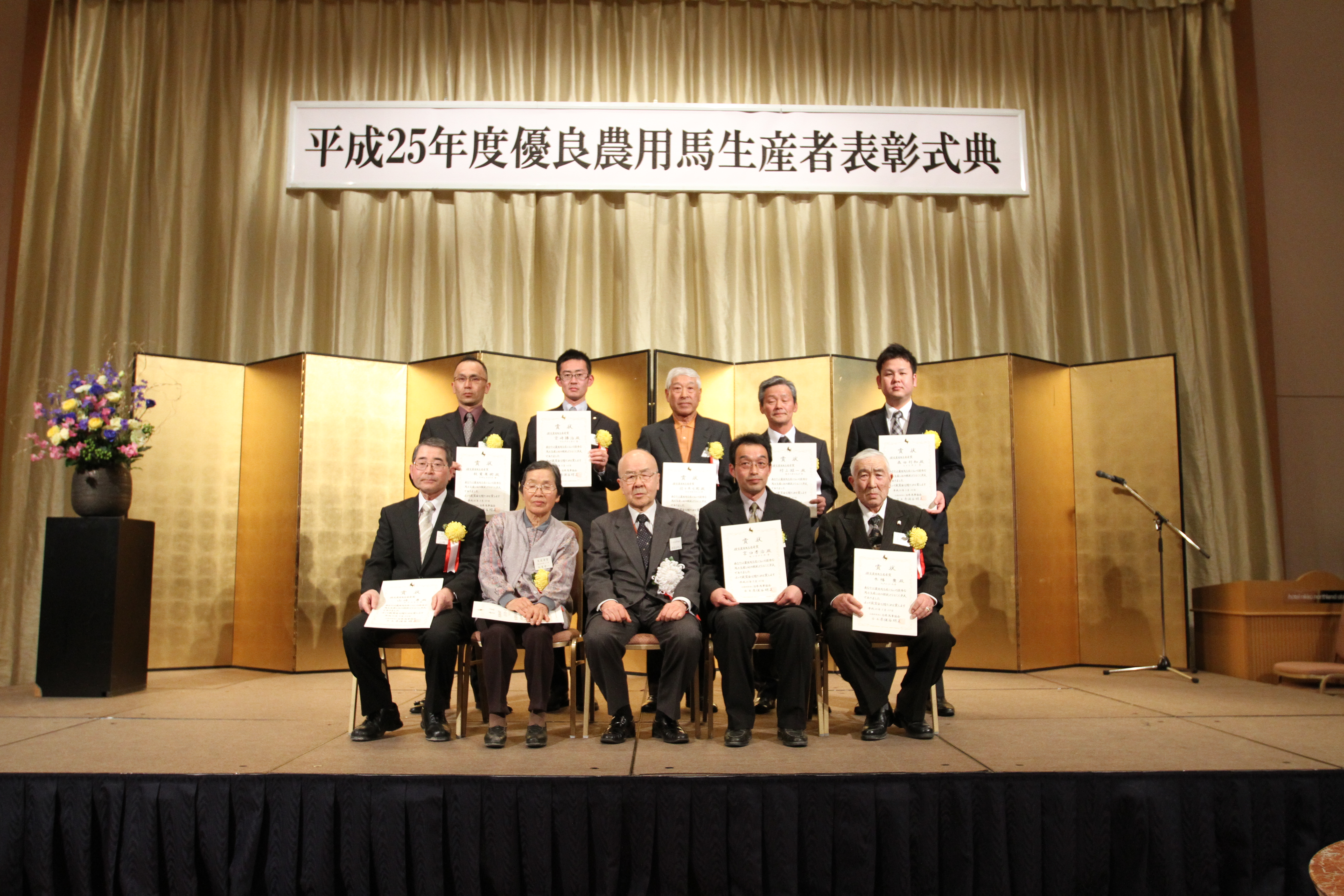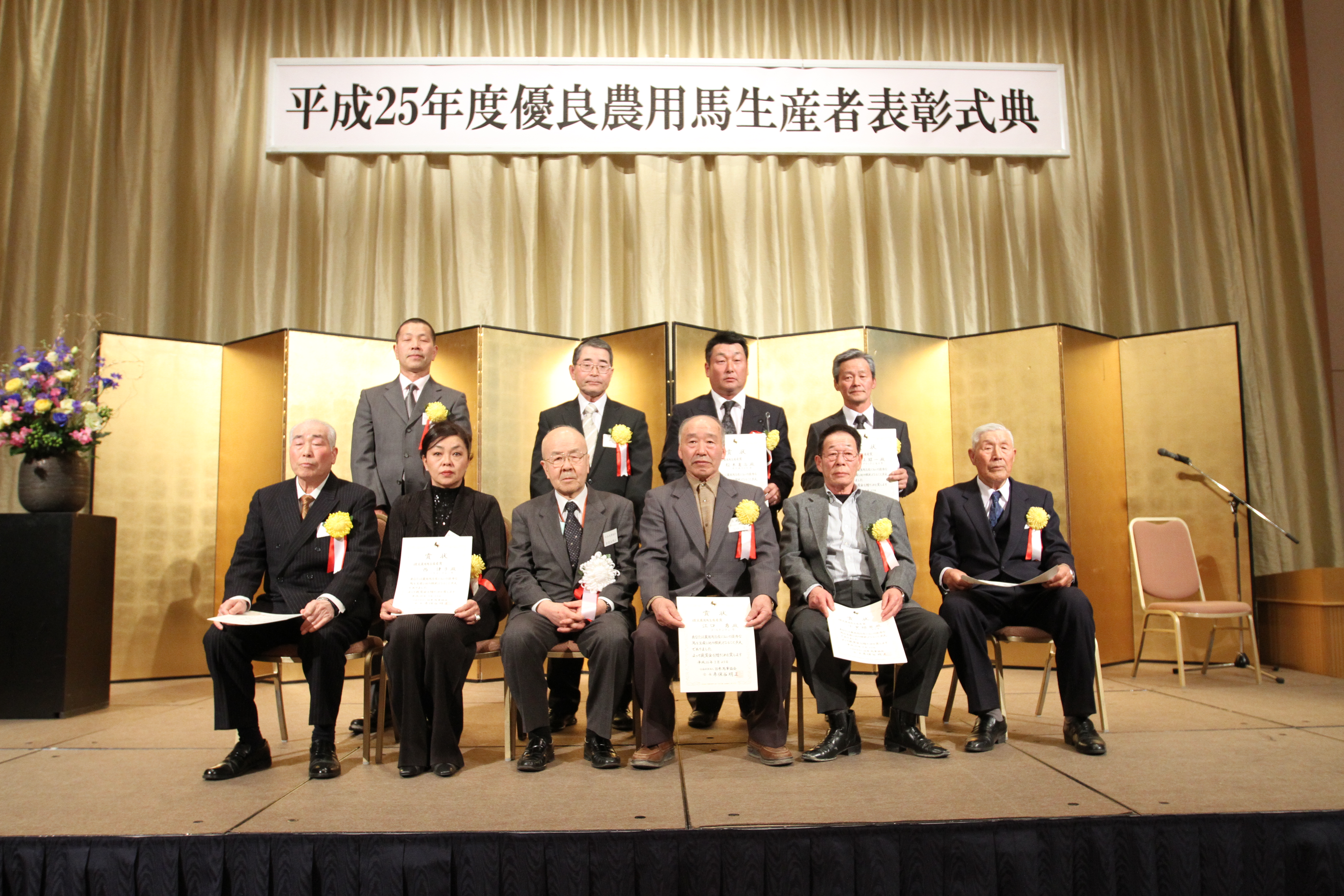 この表彰式は、常日頃ご苦労の多い農用馬生産者の方を対象に、これからも益々生産に励んでもらいたいという願いをこめて、生産意欲の向上と農用馬資源の確保を目的に、日本馬事協会が地方競馬全国協会の補助を受け、平成10年度から始めたものです。